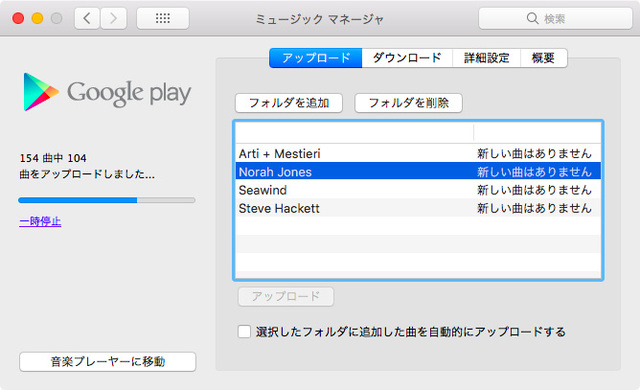 macOSでは、システム環境設定に「ミュージックマネージャー」パネルが作成され、ここからアップロードなどの管理を行うことができる