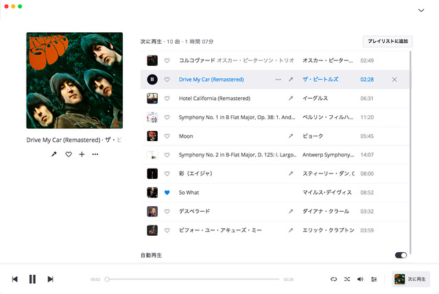キュー再生にも対応。好みの曲をピックアップして、好みの曲順でリスニングできる