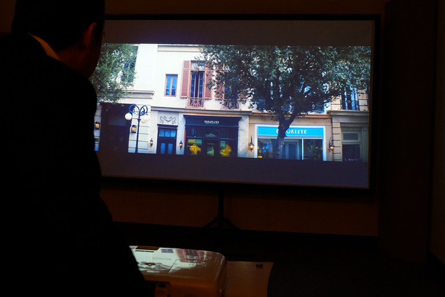 スクリーンの正面から投写すれば、フルHD画質を最大限活かせる