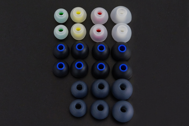イヤーピースは3種類を付属。上から「SpinFit」、「Blue-tube tips」、「Tranparent gray tips」