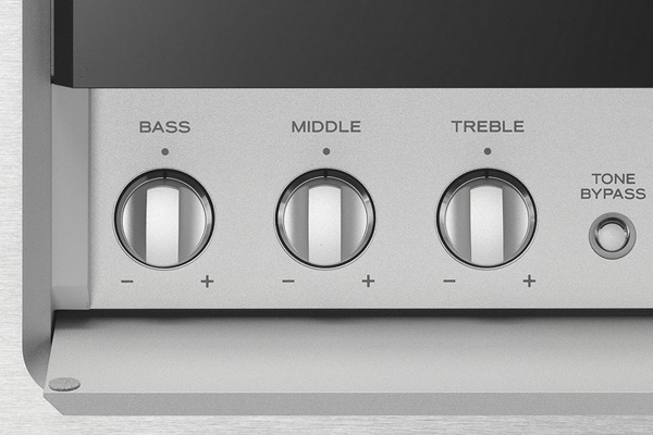 トーンコントロールはターンオーバー周波数がバス63Hz、ミドル630Hz、トレブル14kHzの3バンド