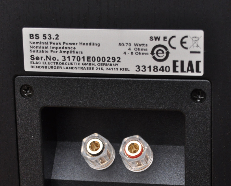 BS 53.2の本体背面。4Ωのインピーダンス表記は実質的な最低値での記載となる