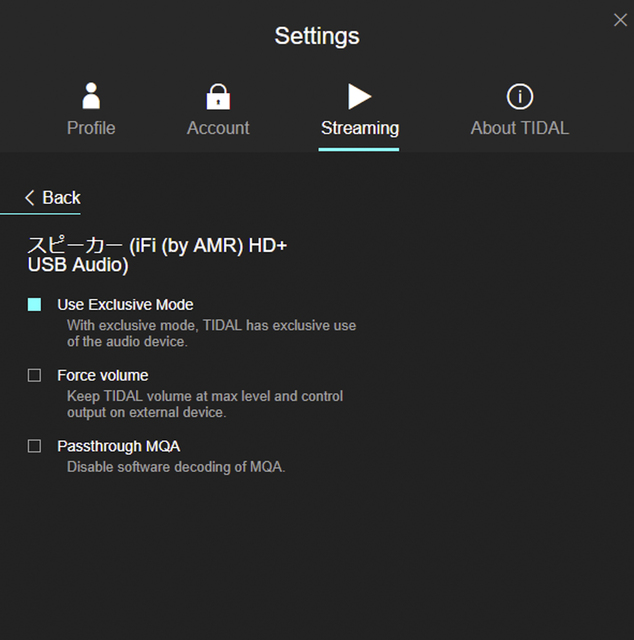 HOME > レビュー > レビュー記事一覧 「デコーダー/レンダラー」の詳細を解説 iFi audioも対応で盛り上がるMQA、その再生のための基礎を徹底解説 佐々木喜洋 2018年05月24日 前の写真へ 次の写真へ デバイスの設定アイコンより「Passthrough MQA」以外のものに設定されていることを確認する 前の写真へ 次の写真へ この写真の記事へ 関連リンク MQA iFi audio日本語サイト