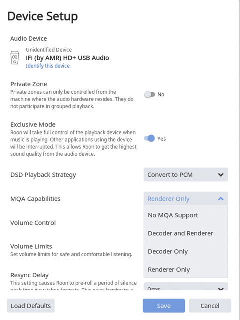 HOME > レビュー > レビュー記事一覧 「デコーダー/レンダラー」の詳細を解説 iFi audioも対応で盛り上がるMQA、その再生のための基礎を徹底解説 佐々木喜洋 2018年05月24日 前の写真へ 次の写真へ Roonの場合の設定画面。「Setting」→「Audio」からiFi audioのドライバを選択。歯車の設定マークを押すと、MQA設定のタブが出て来るので、iFi audio機器の場合は「Renderer Only」に設定する 前の写真へ 次の写真へ この写真の記事へ 関連リンク MQA iFi audio日本語サイト
