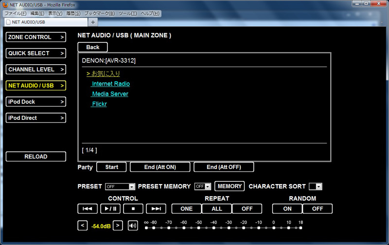 「NET AUDIO/USB」を再生ソースに選択。「Media Server」を選ぶとネットワークに接続されたNASのコンテンツにアクセスできる