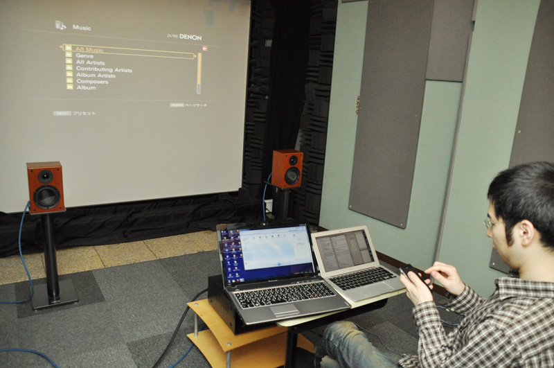 ネットワークオーディオソースの試聴はデノンのスピーカー「SC-A55SG」と組み合わせてテストした