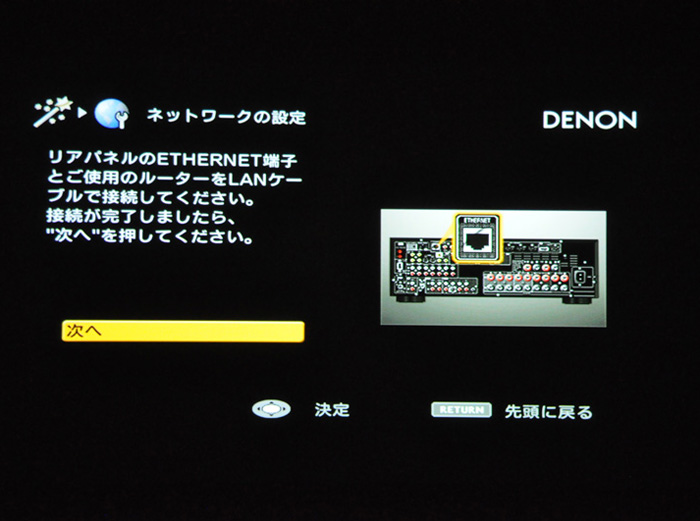 AVアンプ本体もLANケーブルをつないでネットワークに参加させる