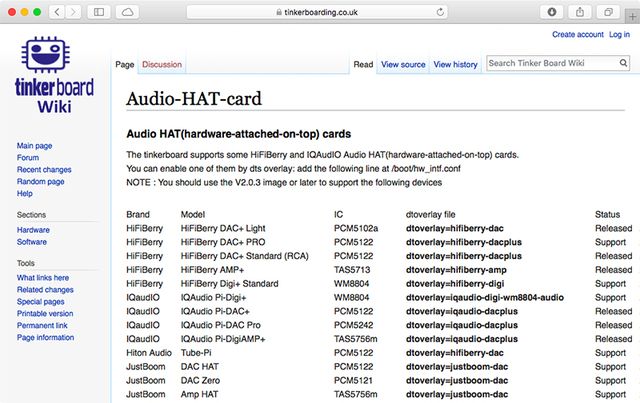TinkerBoardのオーディオ用拡張カードの対応状況