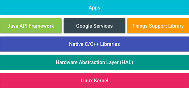 Android Thingsのレイアウト。既存の開発フレームワークをIoT機器で生かせることがポイントだ