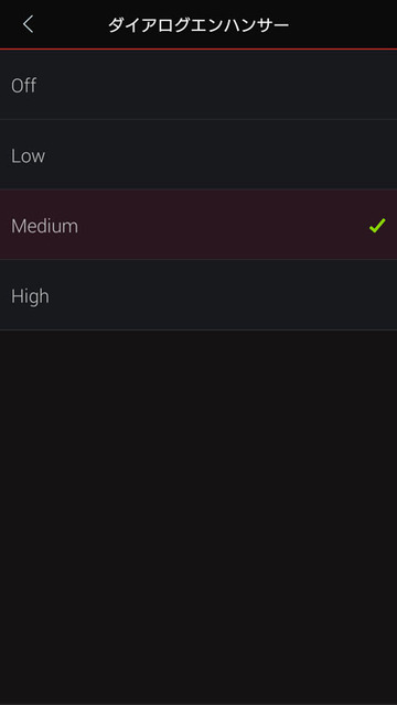 ダイアログエンハンサーでは、High/Medium/Lowとオフを選択可能