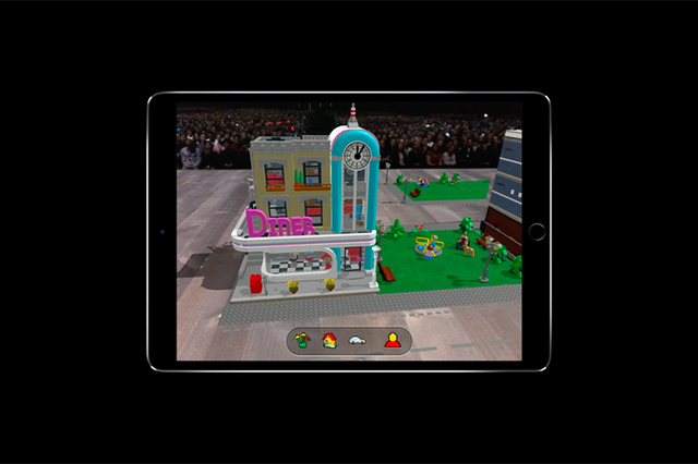 ARKit 2の活用例として紹介されたLEGOのデモ。実物のLEGOの横にARレゴの家を建てたり、複数のiOSデバイスに同じAR画面を映し出すなどのデモが行われた