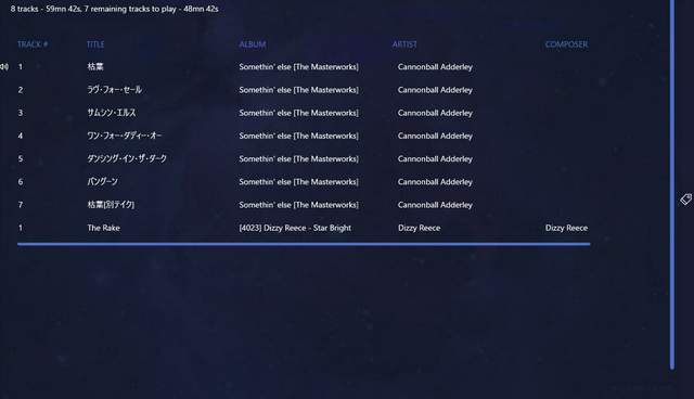 メイン画面右下の“キューアイコン”をクリックするとプレイキュー(プレイリスト)が表示される