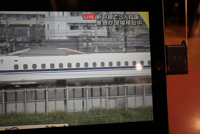 フルセグ放送を受信中。カフェのある程度奥まった場所の席でもこの日は比較的スムーズに受信ができていた