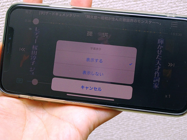 スマホ再生時にも字幕付の番組は字幕のON/OFFが切り替えられる