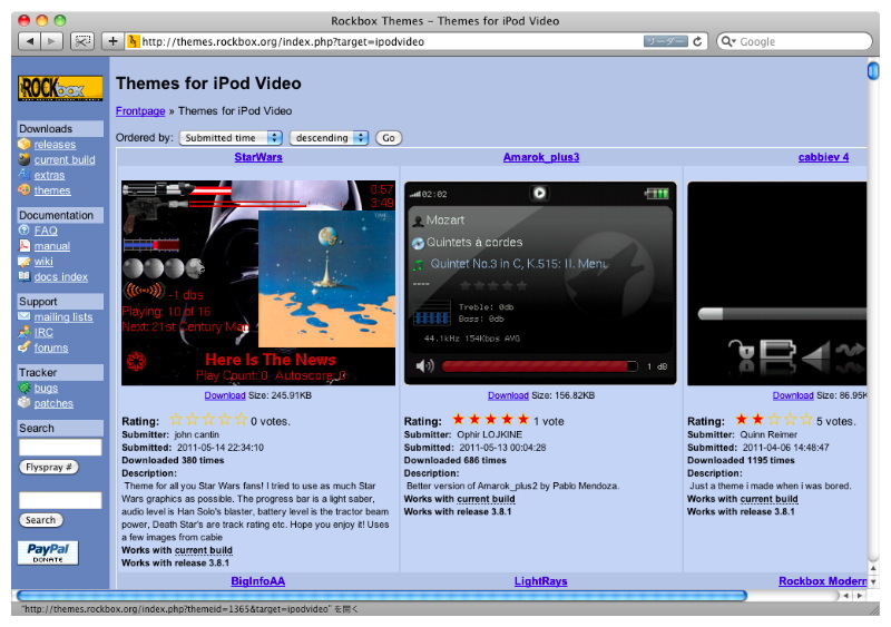 豊富に用意された「テーマ」の表示見本は、RockboxのWebサイトに掲載されている