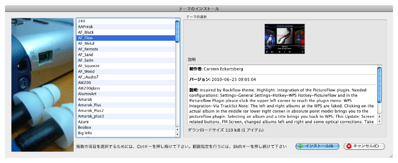 Rockbox Utilityを利用すると、表示見本で確認しながら好みのテーマをインストールできる