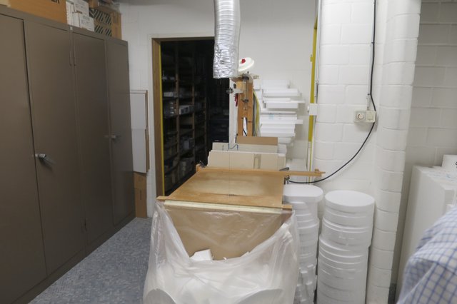 Transrotor製品の梱包に使用する発泡スチロールを加工する部屋