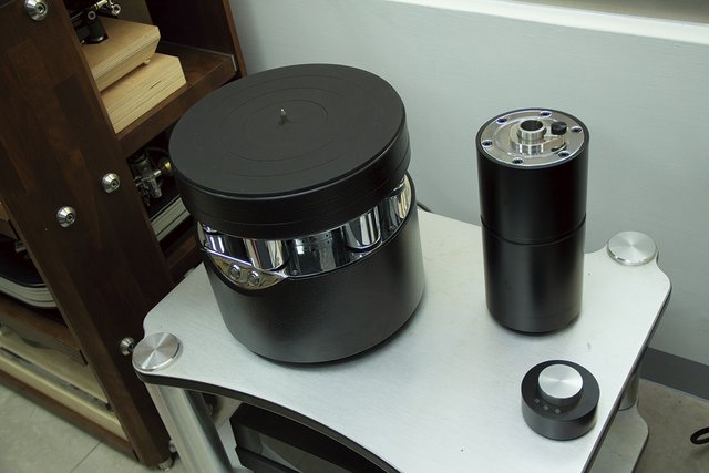 ダイレクトドライブの限界を知るために作ったという、超弩級の風格を漂わせるティエンブランドの4番目のプレーヤー。プロトタイプとのことだが、モーターを外付けとしてベルトドライブ方式のプレーヤーとしても使用できる構造となっている