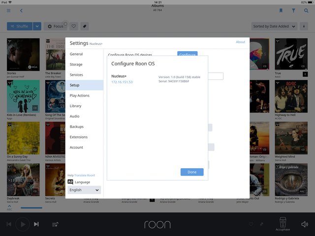 「Setup」内にRoon OS搭載機専用の設定画面が用意されている