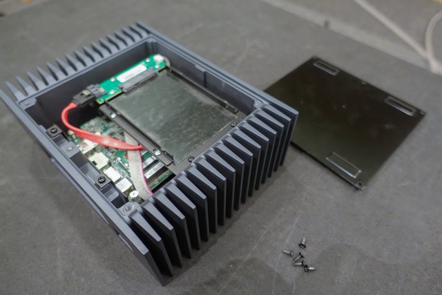底面のパネルを外すとストレージを搭載するためのスロットにアクセスできる(出荷時は非搭載)
