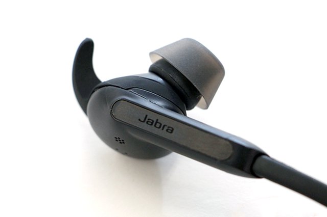 Jabraロゴのプレート部分にマグネットが内蔵されており、左右のイヤホンをくっつけると音楽は自動停止、通話も終了となる