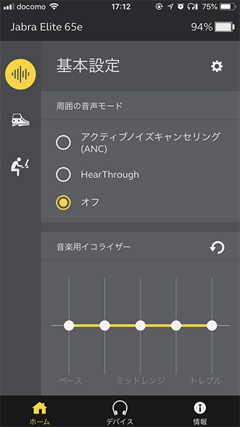 専用アプリ「Jabra Sound+」を使って、ノイズキャンセリング効果のON/OFFなど使用時の各種設定が可能
