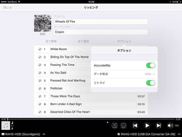 読み込みのデータ形式もWAV、FLAC、非圧縮FLACの3種類から選択可能