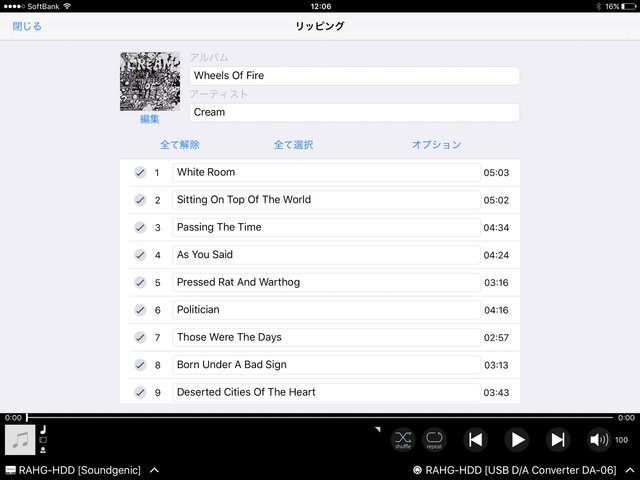 こちらがCDリッピングUI。アルバム名や楽曲名の変更の他、ジャケット画像をタップすることで、任意の画像への変更も行える