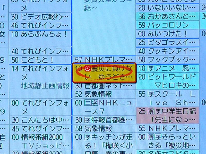 予約した番組には赤マルがつく