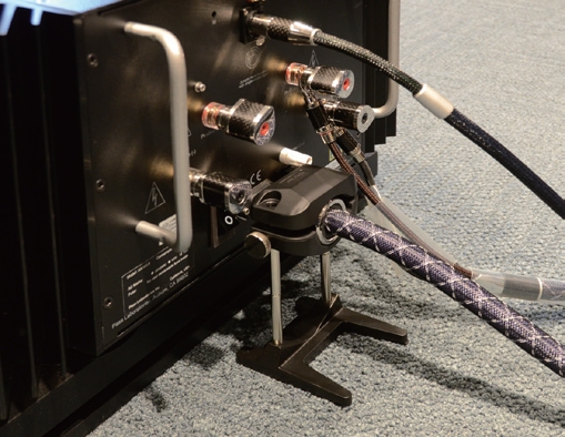 パワーアンプの電源入力部への使用例。付属のシャフトバー2本を追加装着して高さを合わせた