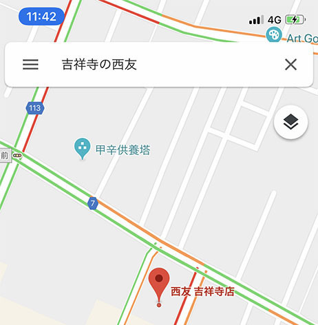 iPhone側の画面。「吉祥寺の西友」と話すだけで一発で目的地を設定できるのは便利だ