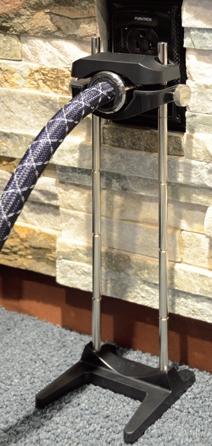 壁コンセントには、NCF Boosterとオプションの「Extension Shaft Bar」を使って高さを延長して調整すると、抜けやすいプラグを安定支持できる。電源ボッ クス周りもNCF Bosterシリーズ導入の効果が大きい部分でお薦め