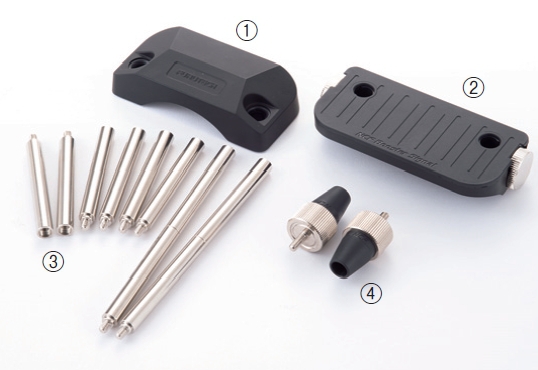 多彩なオプションが用意されており、さまざまな箇所や機器への使いこなしも可能。 (1)「TopClamp」(13,800円・税抜)。NCF Booster-Signalに追加して強化可能。ステンレスパウダーを基本材料とし、複数の特殊制振金属パウダーを調合、 ナイロン樹脂と複合させ、質量は約295g (2)「Cradle-Flat」(12,000円・税抜)。NCF Booster-Signalのケーブルホルダー部の単売品(固定リング2個付属)。追加で自在&複合的な応用ができる (3)「Extension Shaft Bar」(3,000円/10本セット・税抜)。1本あたりの高さ59.5mm、手でねじ込むだけで連結可能 (4)「Shaft Bar Adjuster」(3,800円/2個・税抜)。クレイドル部の高さを微調整、最適化する中継具