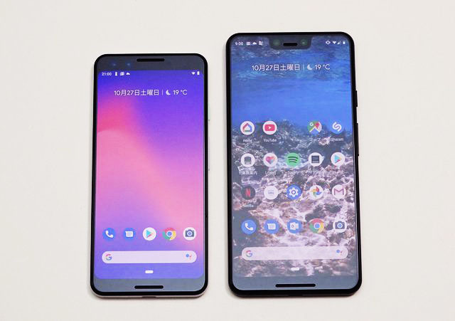 グーグルのPixelシリーズが日本初上陸。5.5インチの「Pixel 3」(左側)と6.3インチの「Pixel 3 XL」(右側)をレビューする