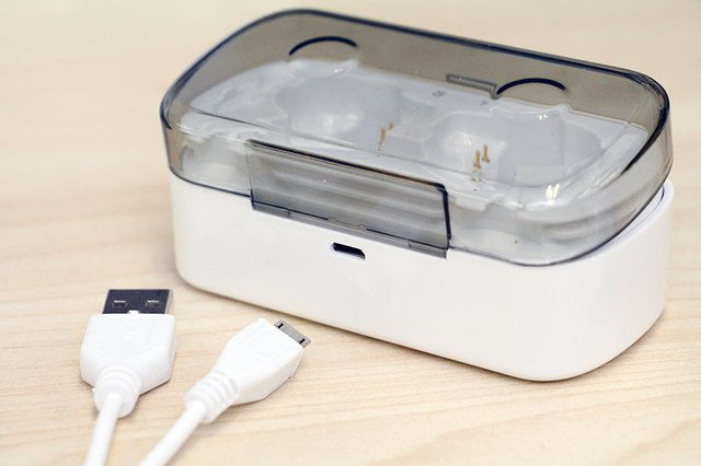 背面部にはケース充電用のmicro USB端子を備える