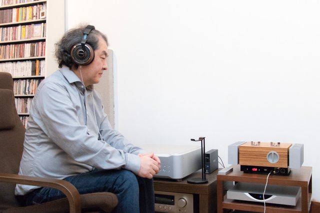 自身のリスニングルームでサウンドを確かめる山之内氏