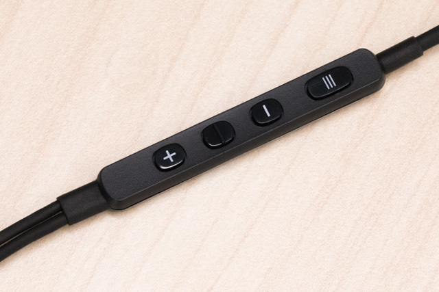 一般的な3ボタンに加え、ユーザーが機能を登録できる「スマートボタン」を備えている。通話マイクは右イヤホン側のケーブルに搭載している