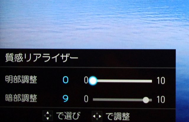 「質感リアライザー」を「手動」で「明部:0」「暗部:9」に変更