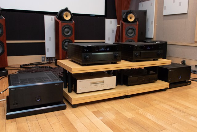 ヤマハの試聴室に用意された新旧モデル。左側に配置されたのが最新のCX-A5200/MX-A5200。右側に配置されたのがCX-A5100/MX-A5000だ