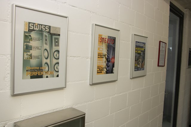 通路にはこれまで有名オーディオ誌の表紙を飾ったピエガのプロダクトが並ぶ