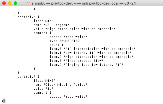 設定ファイル(/var/lib/alsa/asound.state)を手作業で書き替える方法もあるが、alsamixerコマンドを使うことが現実的だ