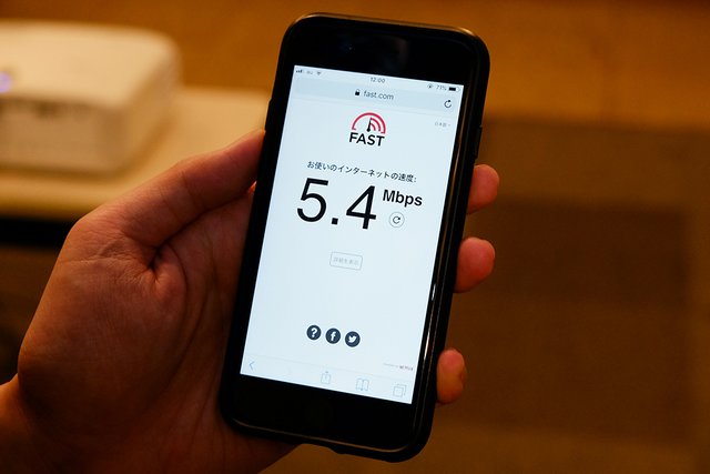 中継機のない状態では5.4Mbpsとなり、映像が再生できなかった
