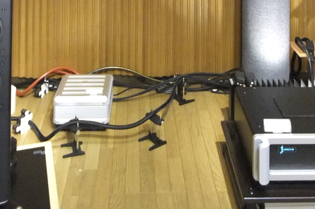 スピーカーケーブルを載せた「NCF Booster-Signal」のいくつかの隙間に、インターコネクトケーブルの一部を載せても効果が出る