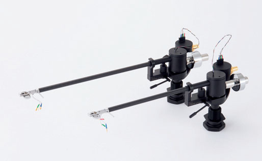 トーンアームViroa。手前は10インチ、奥は12インチ。アームパイプにカーボンを採用、アジマス調整機構とアンチスケーティング機構を兼備する独自のマグネットダンピングシステムを採用。出力はRCA端子