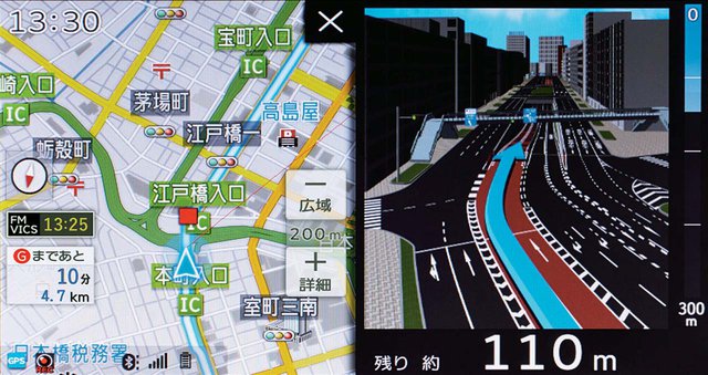 進路がわかりにくい難交差点では、周辺を3Dイラストで表現して案内する