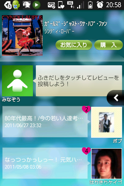 LISMO!の独自SNS「うたとも」に再生中の曲のレビューを投稿することもできる