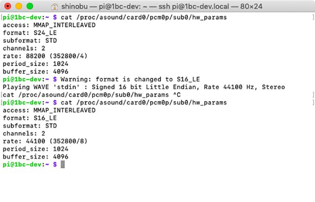 procファイルシステムを確認すると、88.2kHz/24bitのWAVファイルも支障なく再生できていることがわかる