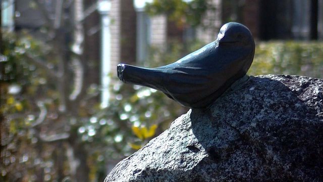 近接撮影をして背景をぼかしてみた。ブロンズやその下の岩の質感もよく出ており、フルHDを十分実感できる