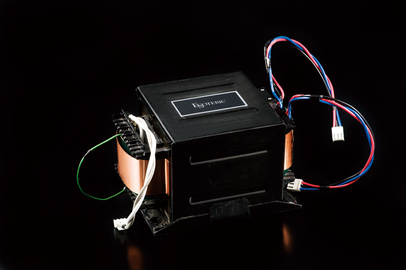 I-03に搭載された質量10kgを超える大容量カスタム・トランス。大型コンデンサーで構成された強力なアナログ電源回路を採用している