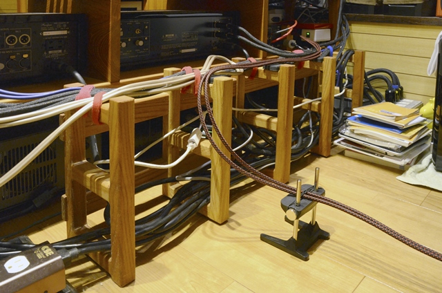 角田氏が自宅リスニングルームのオーディオシステム用に自作したケーブル・ラックとNCF Booster